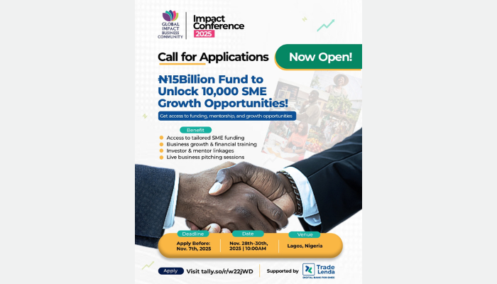 The Global Impact Business Community (GIBC), in collaboration with Trade Lenda, has opened applications for the 2025 Impact Conference, alongside the launch of a N15 billion SME Growth Fund to support small and medium enterprises across Nigeria.